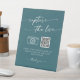 Ce boho chic bleu turquoise capture le signe mariage d'amour est parfait pour un mariage minimaliste. La tonalité audacieuse turquoise de bijou moderne design bohème dispose de calligraphie rustique simple avec un style unique mais classique. Entrez votre adresse Web dans la section de code QR du modèle et le code QR sera automatiquement mis à jour et lié à votre site.