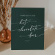 Cette enseigne chic boho vert émeraude au chocolat chaud est parfaite pour un mariage minimaliste. Le design bohème moderne et moderne de la forêt de chasseurs, sombre et maussade, se compose d'une calligraphie rustique simple au style unique mais classique. Ce signe peut être utilisé lors d'un mariage, d'un baby shower, d'une douche nuptiale, d'une fête d'anniversaire, d'une fête de Noël ou de tout événement d'automne ou d'hiver!