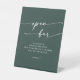 Cette enseigne de mariage de bar émeraude chic et vert émeraude est parfaite pour un mariage minimaliste. Le design bohème moderne et moderne de la forêt de chasseurs, sombre et maussade, se compose d'une calligraphie rustique simple au style unique mais classique.