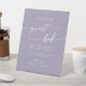 Cette enseigne de mariage chic en lavande violette chic boho est parfaite pour un mariage minimaliste. Le design bohème moderne et coloré et pourpre présente une calligraphie rustique simple au style unique mais classique. Parfait pour toute saison : printemps, été, automne ou hiver. Personnalisez votre panneau de livre d'or mariage avec les noms du couple.