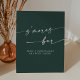 Cette enseigne de mariage boho chic et moderne vert émeraude smores est parfaite pour un mariage minimaliste. Le design bohème moderne et moderne de la forêt de chasseurs, sombre et maussade, se compose d'une calligraphie rustique simple au style unique mais classique.