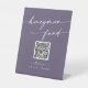 This boho chic plum purple wedding honeymoon fund pedestal sign is perfect for a minimalist wedding. The moody dark purple jewel tone modern bohemian design features simple rustic calligraphy with a unique yet classic style.