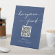 Ce guéridon chic et chic mariage royal en lune de miel est parfait pour un mariage minimaliste. Le design bohème moderne bleu foncé et audacieux présente une calligraphie rustique simple avec un style unique mais classique. Entrez votre adresse Web dans la section de code QR du modèle et le code QR sera automatiquement mis à jour et lié à votre site ou application. Personnalisez les panneaux avec vos noms.
