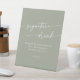 Cette signature boho chic sauge verte mariage est parfaite pour un mariage minimaliste. La tonalité neutre en terre verte design bohème moderne se caractérise par une calligraphie rustique simple au style unique mais classique. Personnalisez votre panneau de bar mariage avec le cocktail de spécialités qui sera servi.