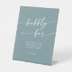 Cette enseigne de mariage de bar à bulles chic et boho est parfaite pour un mariage minimaliste. Le design bohème moderne et coloré bleu vert présente une calligraphie rustique simple, avec un style unique mais classique qui rappelle la plage, l'océan et le bord de mer d'été.