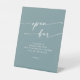 Cette enseigne de mariage de bar ouvert turquoise, chic et boho, est parfaite pour un mariage minimaliste. Le design bohème moderne et coloré bleu vert présente une calligraphie rustique simple, avec un style unique mais classique qui rappelle la plage, l'océan et le bord de mer d'été. Parfait pour toute saison : printemps, été, automne ou hiver.