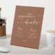 Cette enseigne de boissons chic et boho en terre cuite signées mariage est parfaite pour un mariage minimaliste. Le design moderne et bohème orangé terreux présente une calligraphie rustique simple, avec un style unique mais classique. Personnalisez votre panneau de bar mariage avec les cocktails spéciaux sirotés et sirotés qui seront servis.