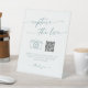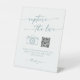 Ce chic boho turquoise et blanc capte le signe mariage d'amour est parfait pour un mariage minimaliste. Le design bohème moderne bleu vert et blanc présente une calligraphie rustique simple avec un style unique mais classique qui rappelle la plage côtière et une croisière d'été sur l'océan. Entrez votre adresse Web dans la section de code QR du modèle et le code QR sera automatiquement mis à jour et lié à votre site.
