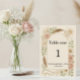 Customize this Boho Chic Pedestal Sign with your specific table number and event details. The design is inspired by the natural, sun-drenched aesthetic of Tulum, Mexico, featuring a modern arch, dried floral elements, and a neutral color palette. Display your table information or a welcoming message with this freestanding, high-quality sign.