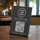 Elevate your countertop, reception desk, or checkout area with this custom QR code black pedestal sign, designed to make connecting with your business fast, simple, and professional. Featuring a clean layout, modern white typography, and your logo and business name, this tabletop sign blends seamlessly into any retail, salon, clinic, café, office, or service-based environment. With a single scan, customers can instantly view your services, prices, menu, or offerings online. Zazzle automatically generates the QR code from the website address you provide, so there’s no extra setup or technical work required—just enter your URL and Zazzle does the rest. The sturdy pedestal design keeps the sign upright and easy to read, making it ideal for high-traffic counters and front desks. This personalized QR code tabletop sign is a smart, contactless solution for sharing information, increasing website visits, and enhancing customer experience while reinforcing your brand identity in a polished, professional way.