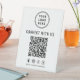 Make it effortless for customers to connect with your brand using this clean, modern tabletop pedestal sign. Designed for countertops, checkout areas, and event tables, this sign features a bold QR code layout that instantly directs customers to your website, menu, booking page, or Facebook, Instagram, TikTok and X social media profiles. The minimalist design keeps your branding front and center, with space for your logo at the top and a clear call-to-action that encourages engagement. Perfect for retail stores, cafés, salons, trade shows, pop-ups, and professional events, this sturdy pedestal sign stands upright and remains highly visible without taking up valuable space. Customize it with your brand logo, social media handle, and preferred messaging to create a polished, cohesive look that reinforces your brand at every customer touchpoint.