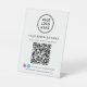 Panneau de piédestal de table moderne pour votre entreprise avec votre code QR pour les clients à analyser pour effectuer un paiement, pour voir une liste de vos produits, services et prix, pour faire des rendez-vous, pour s'inscrire, etc. Téléchargez votre logo et votre code QR et ajoutez votre nom d'entreprise, votre numéro de téléphone, votre adresse municipale ou toute autre information en simple typographie. Ajoutez vos identifiants instagram et facebook pour que les clients puissent vous suivre sur les médias sociaux.