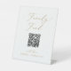 Cette délicate calligraphie or code QR famille de fonds de guéridon signe est parfait pour une douche mariage moderne ou nuptiale. Le design minimaliste romantique présente une belle et élégante typographie de champagne jaune doré sur un arrière - plan blanc au look épuré et simple. Customisez votre code QR et personnalisez avec vos noms.