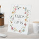 Cartes et cadeaux sur un présentoir de table pour pancarte de mariage. Ce design présente un délicat bouquet de fleurs sauvages peintes à la main et de verdure accompagné d'une combinaison charmante de polices modernes et rustiques. Voir la collection complète pour plus d'articles assortis !