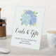 Cette enseigne de fêtes de fiançailles présente un design floral aquarelle de bouquet d'hydrangea bleu avec une typographie de script moderne. Personnalisez-la avec votre texte. Produits de fêtes de fiançailles assortis disponibles.