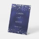 Un panneau cartes et cadeaux pour un anniversaire, mariage, baby shower. Un fond bleu marine avec des étoiles argentées élégantes et fausses. La couleur bleue est inégale. Le texte : cartes et cadeaux, merci !