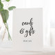 Cette carte de script rustique et le panneau de piédestal cadeau est parfait pour une douche mariage campagnard ou nuptiale. Le design simple et moderne en noir et blanc présente une calligraphie manuscrite unique et fantaisiste, avec un style boho minimaliste contemporain. Personnalisable dans n'importe quelle couleur. Gardez le design minimal et simpliste, en l'état, ou personnalisez-le en ajoutant vos propres graphiques et artwork. La ligne de texte en bas du panneau peut être personnalisée avec la date, les noms de la mariée et du marié, ou un message court comme "Merci". Ce signe peut être utilisé pour un mariage, un événement ou une fête.