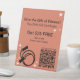 Le Certificat Cadeau de Noël pour Débutants Fitness Pied Sign fait partie de la collection "Orange Fitness Cartes de visite & Marketing". Il est conçu pour les promotions de certificats-cadeaux de vacances saisonnières dans les salles de sport et les studios de fitness. Cet accent orange, noir et blanc de marque 8x10 pouces promo avec un symbole de corde à sauter et un confetti étoilé a un effet de panneau d'affichage. Il a une police claire pour la devise, l'offre, et la promesse, ainsi qu'une indication de l'endroit où l'obtenir, une date d'expiration facultative, et la capacité de scanner et d'acheter en ligne ou obtenir plus d'informations. Vous pouvez customiser le code QR, le texte et même toutes les couleurs d'élément et d'arrière - plan. Pour plus d'informations sur l'image de marque et le marketing d'entreprise hors ligne, visitez le site www.KBMD3signs.com. N'hésitez pas à nous contacter à info@KBMD3signs.com si vous avez besoin d'aide pour la personnalisation ou si vous souhaitez un transfert de design. #ZazzleMade #FitnessStudioPedestalSign #ChristmasPromo #GymCounterTopSign #KBMD3signes