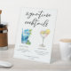 Cette enseigne de style côtier chic à siroter des cocktails sur pilotis est dotée d'une simple typographie noire au-dessus de 2 boissons balnéaires et de leurs ingrédients pour votre bar de mariage sur la plage. Un joli dessin de martini à la goutte de citron et de lagon bleu ajoute une touche cool à votre menu du bar. Complétez avec les noms du couple et la date de leur réception.