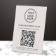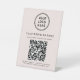 Panneau de socle de table rose moderne et professionnel pour votre entreprise avec votre code QR pour que les clients scannent pour payer, pour voir une liste de vos produits, services et prix, pour des rendez-vous, pour s'inscrire, etc. Téléchargez votre logo et votre code QR et ajoutez le nom de votre entreprise, votre numéro de téléphone, votre adresse ou d'autres informations dans une typographie simple.