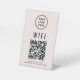 Un panneau de piédestal de table rose moderne et simple pour donner à vos clients et invités une connexion facile à votre réseau wifi. Téléchargez votre code QR et logo et ajoutez d'autres détails, tels que le nom et le mot de passe du réseau.