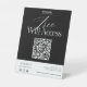 Facilitez la connexion des clients avec ce panneau de code QR WiFi gratuit moderne. Conçu en noir et blanc avec une typographie audacieuse, cet écran personnalisable est parfait pour les cafés, restaurants, salons, boutiques et bureaux. Ajoutez votre nom d'entreprise, vos coordonnées et votre code QR pour un accès instantané. Une façon élégante et professionnelle de partager vos informations WiFi tout en améliorant votre expérience client.