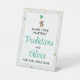 Capturez la sagesse collective et les conseils sincères de vos invités avec nos prédictions et le guichet de conseils. L'ours plein de charme avec icône en forme de ballons en haut ajoute une touche de fantaisie au panneau. Le grand texte de calligraphie verte est facilement visible et invite les clients à participer à cette activité chaleureuse. Le motif à points polka environnant insuffle un sentiment de joie et de joie dans le design. Personnalisez les couleurs pour correspondre parfaitement au thème de votre baby shower. Invitation tes invités à écrire leurs prédictions pour l'avenir du bébé ou à partager leurs précieux conseils pour les nouveaux parents. Cet élément interactif crée un gardien spécial pour les parents à devenir. Améliorez votre expérience grâce à nos prévisions et à nos fiches de conseils de coordination pour un événement de baby shower cohérent et mémorable.