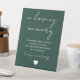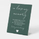 Ce panneau vert émeraude minimaliste élégant "on loving memory" peut être personnalisé avec vos informations dans la typographie chic. Conçu par Thisisnotme©