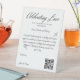 Présentez notre délicieux panneau de table pour le fonds lune de miel, les demandes de voyage et le registre des mariages! Préparez-vous à imprégner votre fête mariage de plaisir et d'esprit. Entièrement personnalisable, de vos noms aux détails de paiement (Venmo, PayPal, Zelle, etc.), ce signe est de rendre votre journée spéciale unique. Avec un code QR scannable et une touche de message sincère, c'est la façon idéale pour les invités invitations de se joindre à l'excitation. Que vous rêviez d'aventures lointaines ou que vous souhaitiez simplement asperger un peu de joie dans votre registre, ce panneau vous a couvert. Avec un design épuré et joyeux et minimaliste, avec un motif d'avion subtil dans l'arrière - plan, c'est un succès pour votre mariage !