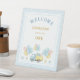 Add a charming display to your party setup with this dump truck first birthday pedestal sign! Featuring a cute truck carrying gifts and balloons with soft baby blue gingham pattern and dotted borders and the text “Rolling into ONE,” it’s perfect for decorating dessert tables, gift tables, or cake stands. A sweet and coordinated accent for a boy’s first birthday celebration.