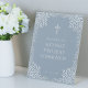 Signe De Table Dusty Blue Boy First Communion Feuilles de bienven