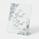 blue white floral wedding sign