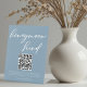 Ce guéridon bleu poussiéreux en lune de miel respire la tranquillité pour un mariage côtier d'été en bord de mer. Personnalisez ce décor bleu gris clair avec une élégante typographie blanche minimaliste et votre code QR de votre site Web pour correspondre à votre jeu de couleurs nuptiales serein.