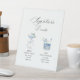 A refined dusty blue signature drinks wedding pedestal sign, designed as a timeless bar feature for elegant wedding receptions.