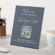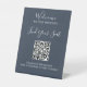 Elégant script manuscrit QR code mariage siège piédestal. Ajoutez l'URL du code QR et votre texte à personnaliser.