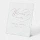 Pour votre mariage cet élégant panneau de piédestal en or blanc et faux rose d'accueil personnalisé présente un script de calligraphie à la main moderne qui dit "Bienvenue à notre Mariage" avec vos noms et date mariage pour personnaliser. Conçu par Susan Coffey.