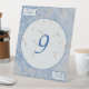 Le design présente un élégant effet "marbré" bleu et gris arrière - plan à la forme affichant clairement le numéro de table en bleu. L'apparence de rubans délicats et le riz en chute recouvrent le design. Le monogramme du couple est affiché en bas à droite. Le mot "Table" s'affiche en haut à gauche. Très Élégant. Conçu pour accompagner la "Suite Mariage en marbre bleu et gris".