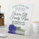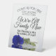 Ce magnifique guéridon autoportant fera savoir à vos invités qu'il n'y a pas de plan d'assise pour qu'ils puissent s'asseoir où bon leur semble. Il présente un design simple mais élégant, avec un seul rose bleu royal à long tige ou couleur cobalt réfléchissant dans une piscine d'eau. Texte : Venez comme vous êtes, restez aussi longtemps que vous le pouvez, Nous sommes la famille maintenant, donc il n'y a pas de plan de place. Un moyen parfait d'invitation vos invités à se mélanger et à se rencontrer.