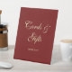 Elegant Script Wine Red Wedding Cards & Gifts Pedestal Sign. A classic and formal burgundy/wine red "cards & gifts" wedding sign, featuring "thank you" on the bottom.
