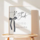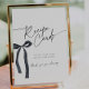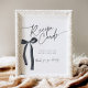 Panneau de carte de recettes avec élégant arc noir pour une Fête des mariées thématique "Chaussures attachant le noeud" : Conçu avec une touche contemporaine, cette pièce de décoration personnalisable ajoute une touche d'élégance à votre célébration. Invitation correspondante, cartes de boîtier et panneaux sont également disponibles dans cette collection.