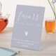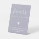 NewParkLane - Sophistiqué Mariage Personnalisé Faveurs Table Piédestal Signal, avec une élégante typographie / calligraphie avec tourbillons, un petit coeur mignon, contre un arrière - plan lavande / violet. Un signe simple, mais chic et élégant pour mettre sur votre table de faveurs de mariage. Tous les textes peuvent être facilement ajustés, en f.i. en chiffres de table, ou pour une station de livre d'or. Facile à customiser à Zazzle pour un design personnalisé. Tous les styles, couleurs et tailles de texte peuvent être modifiés pour s'adapter à votre jeu de couleurs mariage, ainsi qu'à la couleur arrière - plan. Consultez cette collection pour trouver les articles correspondants, comme les désinfectants à main. Avez-vous des souhaits particuliers en matière de design personnel? N'hésitez pas à me contacter.
