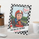 Terminez la fête en toute vitesse avec ce guéridon Fast ONE Favor Table ! Avec le visage de votre enfant qui conduit une voiture de course à travers la ligne d’arrivée à damiers, une bordure en noir et blanc, un arrière - plan de hippodrome, et deux drapeaux de course dans un étiquette rond personnalisé avec les lettres "Fast" (en rouge) et "ONE" (en à damiers), ce panneau est la touche finale parfaite pour votre station de fête. L'expression amusante "Prenez-en un pour la route, puis bouclez-vous!" cravates en parfaite harmonie avec votre thème de course et les invités invitations à attraper un régal avant qu'ils zooment. Customisez maintenant avec la photo de votre enfant et les détails de l’événement pour un signe de faveur qui finit la fête en style!