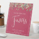 Panneau de table mariage moderne caractéristiques aquarelle eucalyptus feuille bordure sur Magenta arrière - plan tendance avec blocs de texte personnalisables verts dans les polices modernes