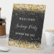 Un signe pour une fête d'anniversaire girly et glamour de 50ème (ou tout âge). Un arrière - plan noir avec de la poussière de parties scintillant en faux or. Personnalisez et ajoutez nom, texte. Le nom est écrit avec un script de style moderne écrit à la main.