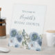 Une belle Fête des mariées florale bleu et blanc couleur aquarelle Panneau de bienvenue. Peut être utilisé pour les douches nuptiales ou de couple, ou mariages.