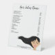 Liste de prix personnalisable modèle pour les salons de cheveux, les coiffeurs et les coiffeurs avec dessin de Destei illustrant une belle femme qui a de longs cheveux noirs coulant dans le vent. Les yeux de la femme sont fermés et ses lèvres roses. Personnalisez les zones de texte avec les détails de votre entreprise.