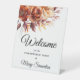 Bienvenue invités à votre fête d'anniversaire avec cet élégant design de fleurs d'automne en terre cuite orangée. Bienvenue et le nom du célébrant d'anniversaire est écrit dans une grande police tendance. Le reste du texte est un classique droit et une police. Très facile à customiser. Ce panneau est facile à utiliser et peut être placé dans une variété d'emplacements.