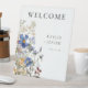 Cette conception simple mais élégante de panneaux de mariage comprend un bouquet rustique aquarelle de fleurs sauvages de prairie violet, jaune, blanc et bordeaux avec verdure. Il fait partie de la Rustic Meadow Fleurs sauvages Purple Watercolor Mariage Suite créée par Simply Farmhouse Press.