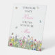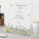 Féminine et estivale, cette enseigne de piédestal "Devinez combien de baisers" utilise un design qui présente un champ coloré de fleurs sauvages délicates avec des papillons, des bourdons et des coccinelles.