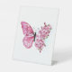 Flower arrangement of pink butterfly with rose Japanese cherry blossoms on white background.
